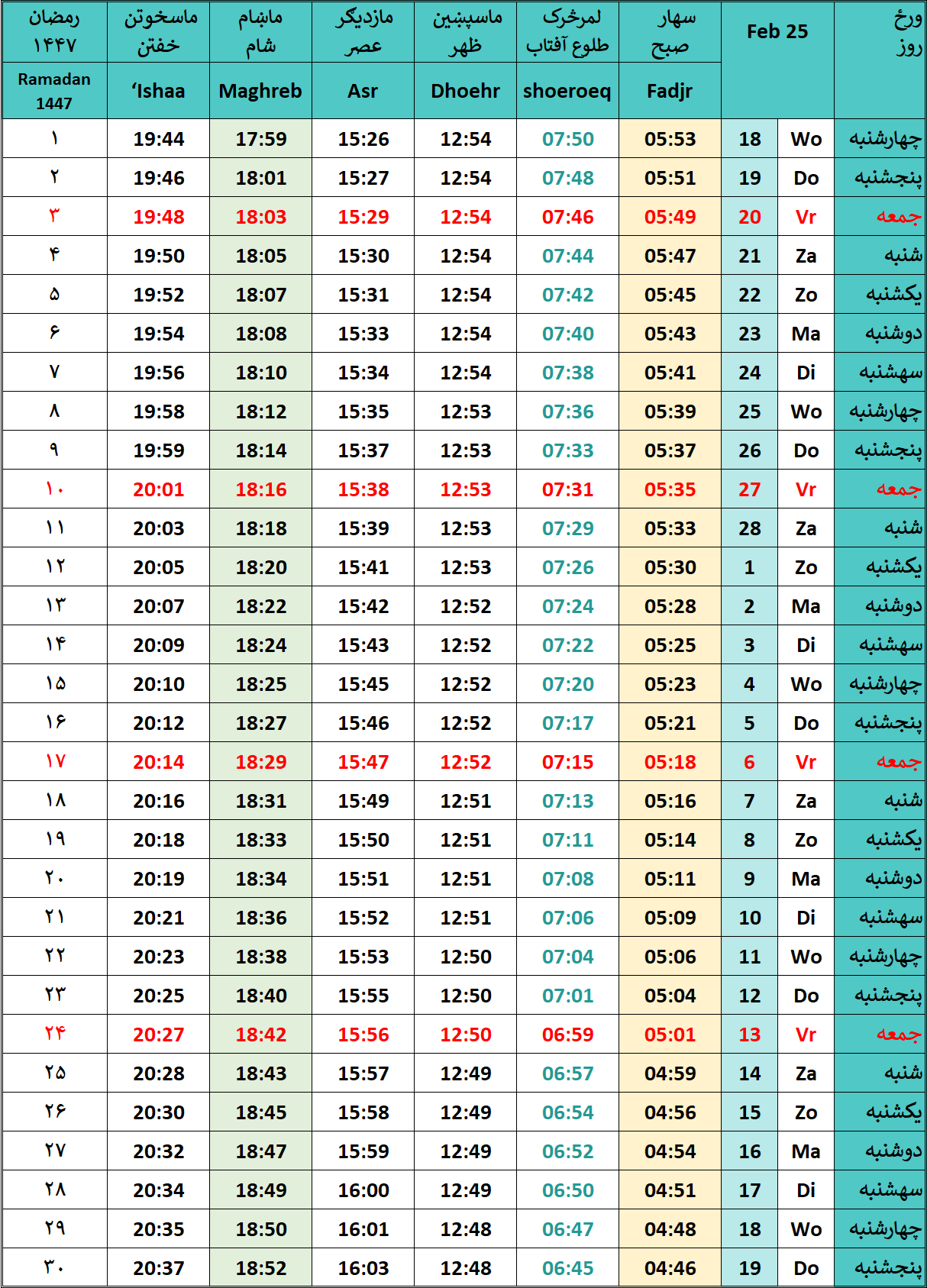 Gebedstijden Ramadhan 2026